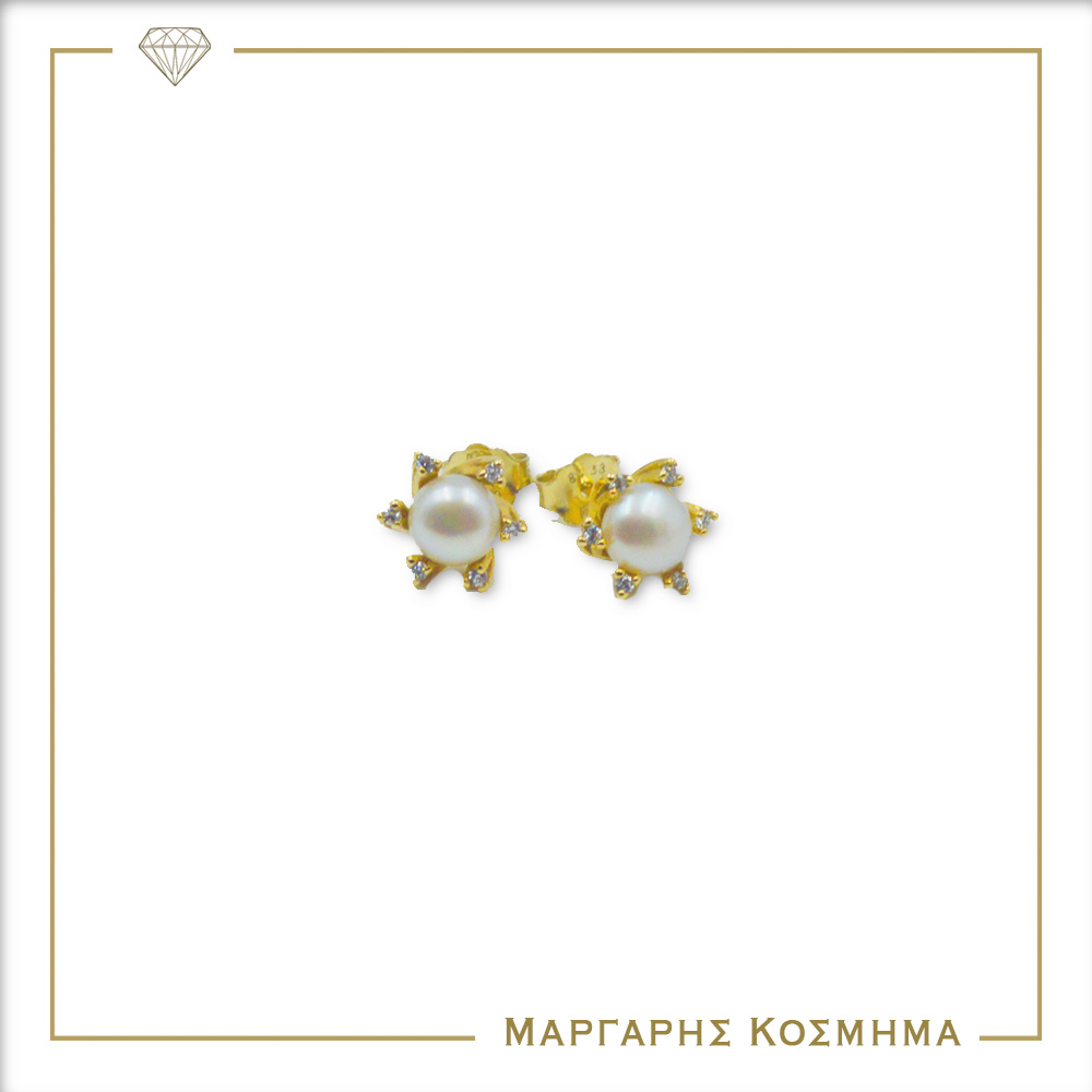 ER103 Γυναικεία Σκουλαρίκια Χρυσά Με Μαργαριτάρι & Ζιργκόν
