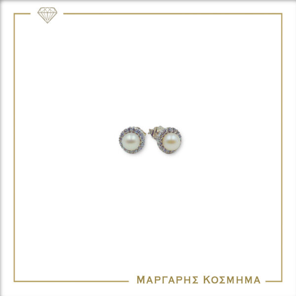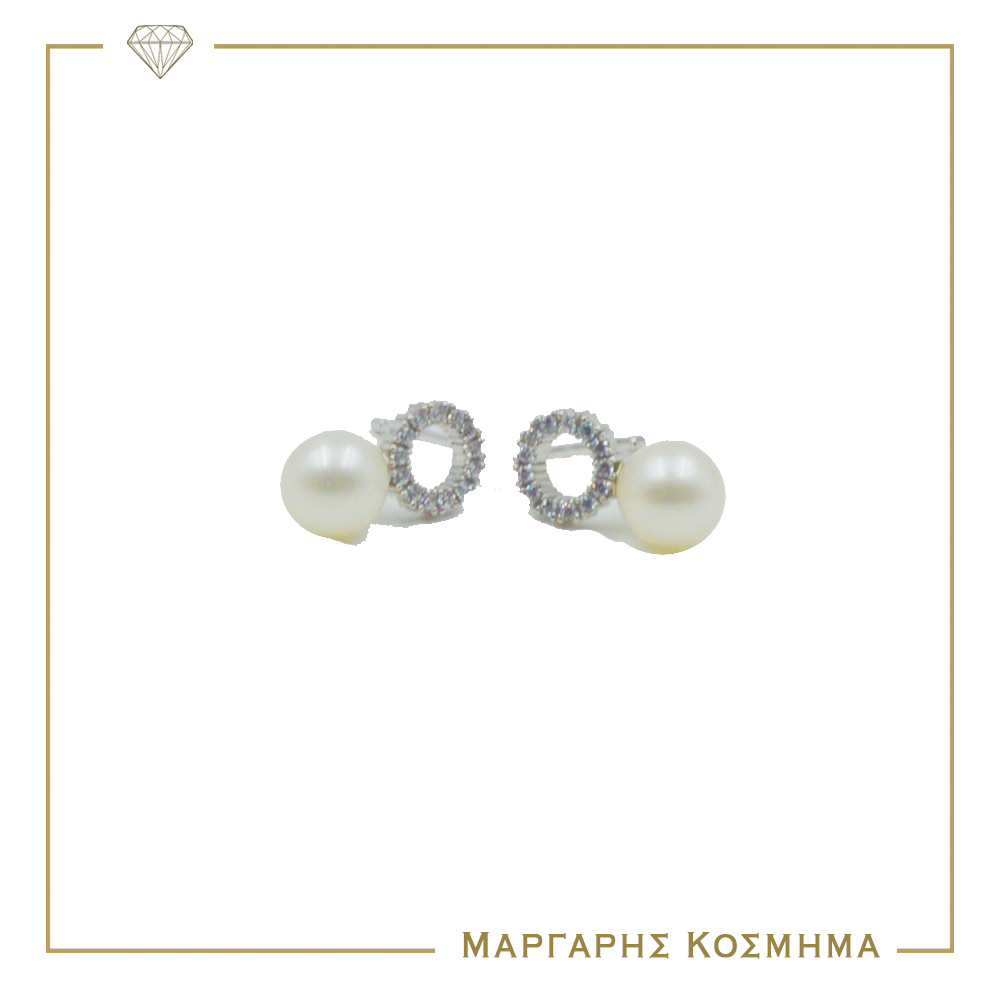 ER108 Γυναικεία Σκουλαρίκια Λευκόχρυσα Με Μαργαριτάρι & Ζιργκόν