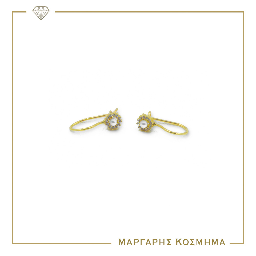 ER103 Γυναικεία Σκουλαρίκια Χρυσά Με Μαργαριτάρι & Ζιργκόν