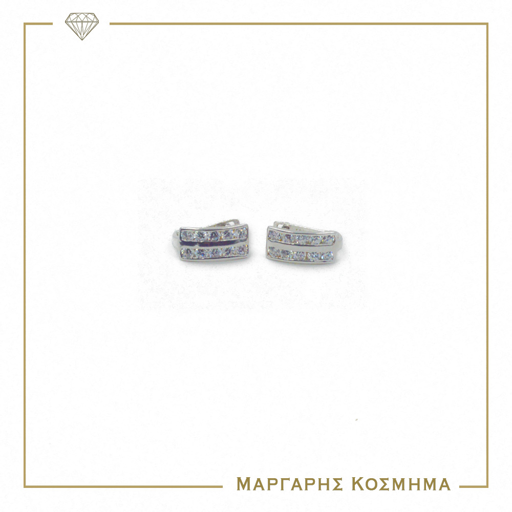 Εντυπωσιακά γυναικεία λευκόχρυσα σκουλαρίκια14 καρατίων, με μοτίφ διπλή σειρά διακοσμημένη με λευκές πέτρες ζιργκόν! Ένα ζευγάρι σκουλαρίκια που θα κλέψει τις εντυπώσεις!