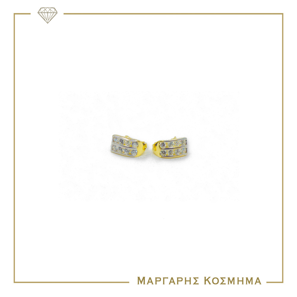 Εντυπωσιακά γυναικεία σκουλαρίκια σε κίτρινο χρυσό 14 καρατίων, με μοτίφ διπλή σειρά διακοσμημένη με λευκές πέτρες ζιργκόν! Ένα ζευγάρι σκουλαρίκια που θα κλέψει τις εντυπώσεις!
