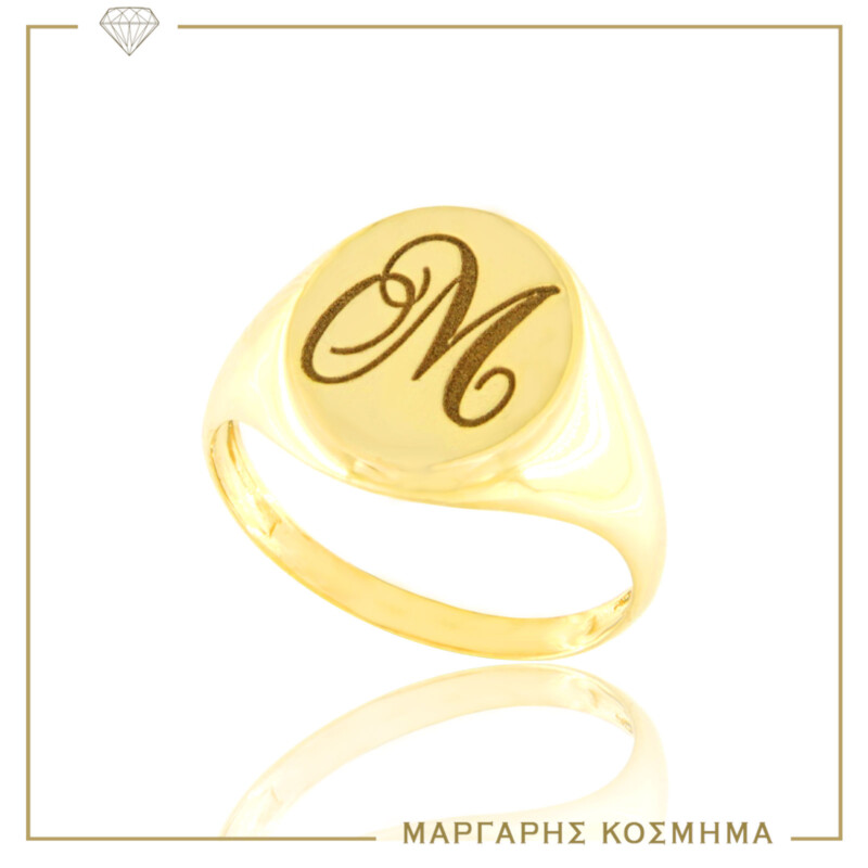 Δακτυλίδι σεβαλιέ σε κίτρινο χρυσο από την FaCadoro χαράσσεται με μονόγραμμα. ( 14- καράτια μέταλλο)