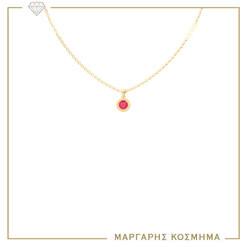 Γυναικείο κολιέ GUESS STEEL COLOR MY DAY χρυσού χρώματος με κόκκινη charm, κόκκινη πέτρα ζιργκόν και λογότυπο(40,64-45,72cm).