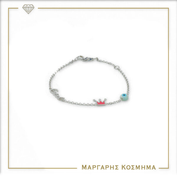 Παιδική βραχιόλι χρυσό με στέμα και ροζ ματάκι.