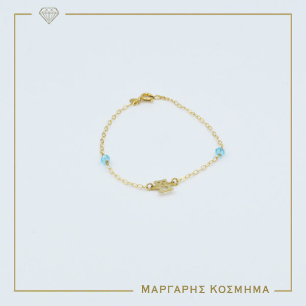 Παιδικό βραχιόλι χρυσό με αρκουδάκι και μπλε πέτρα.
