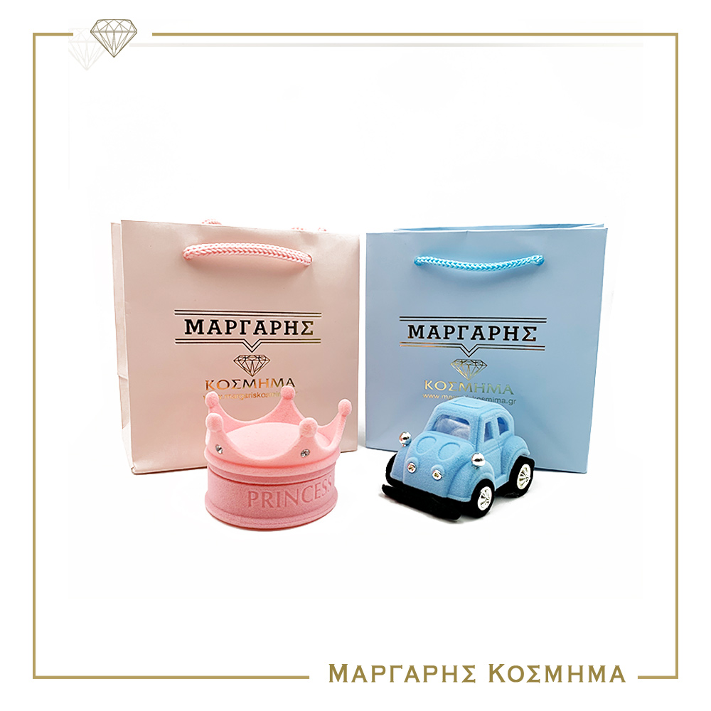 Παιδική ταυτότητα λευκρόχρυση με αυτοκινητάκι και μπλε ματάκι.