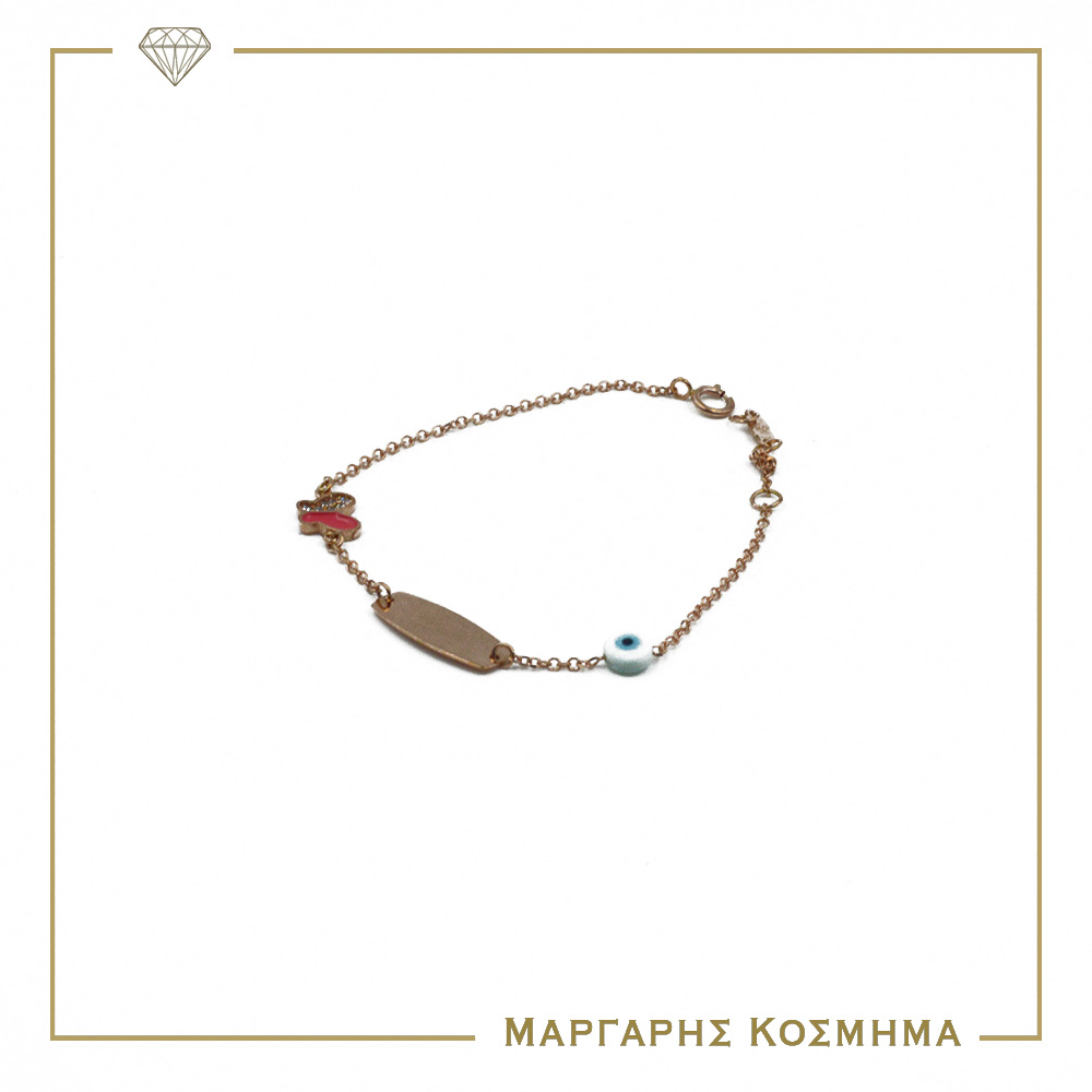 Παιδκό ταυτότητα ροζ χρυσό με πεταλούδα , πέτρες και ματάκι.