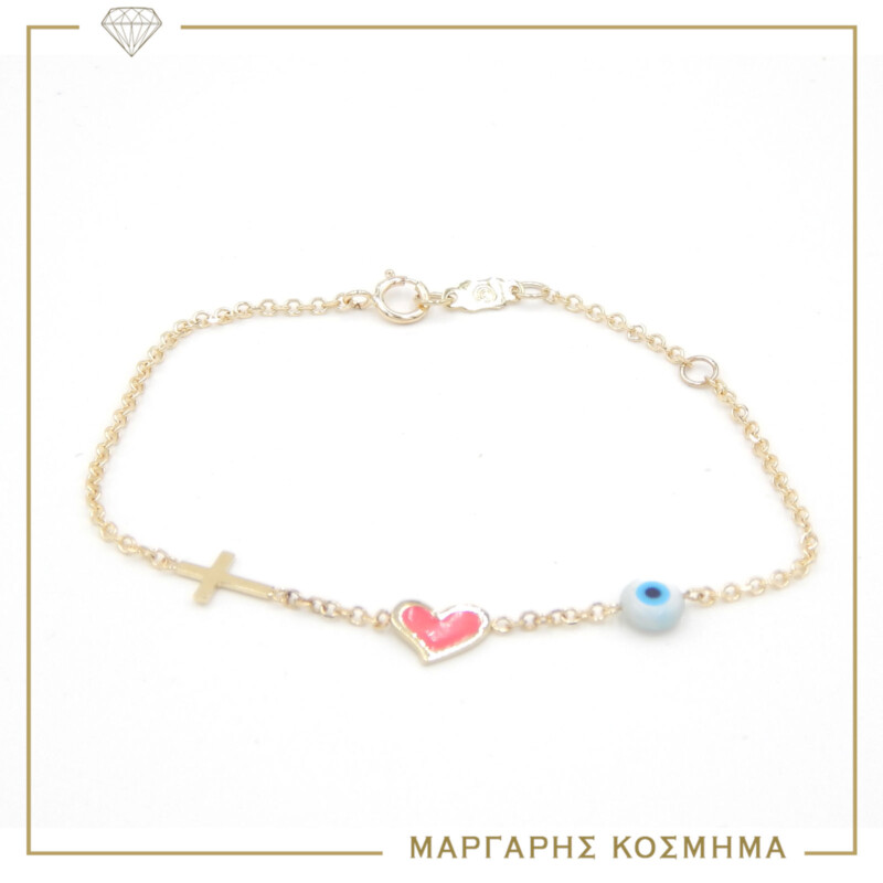 Παιδικό – εφηβικό βραχιόλι στα 14 καράτια χρυσό με μάτι καρδιά σταυρό