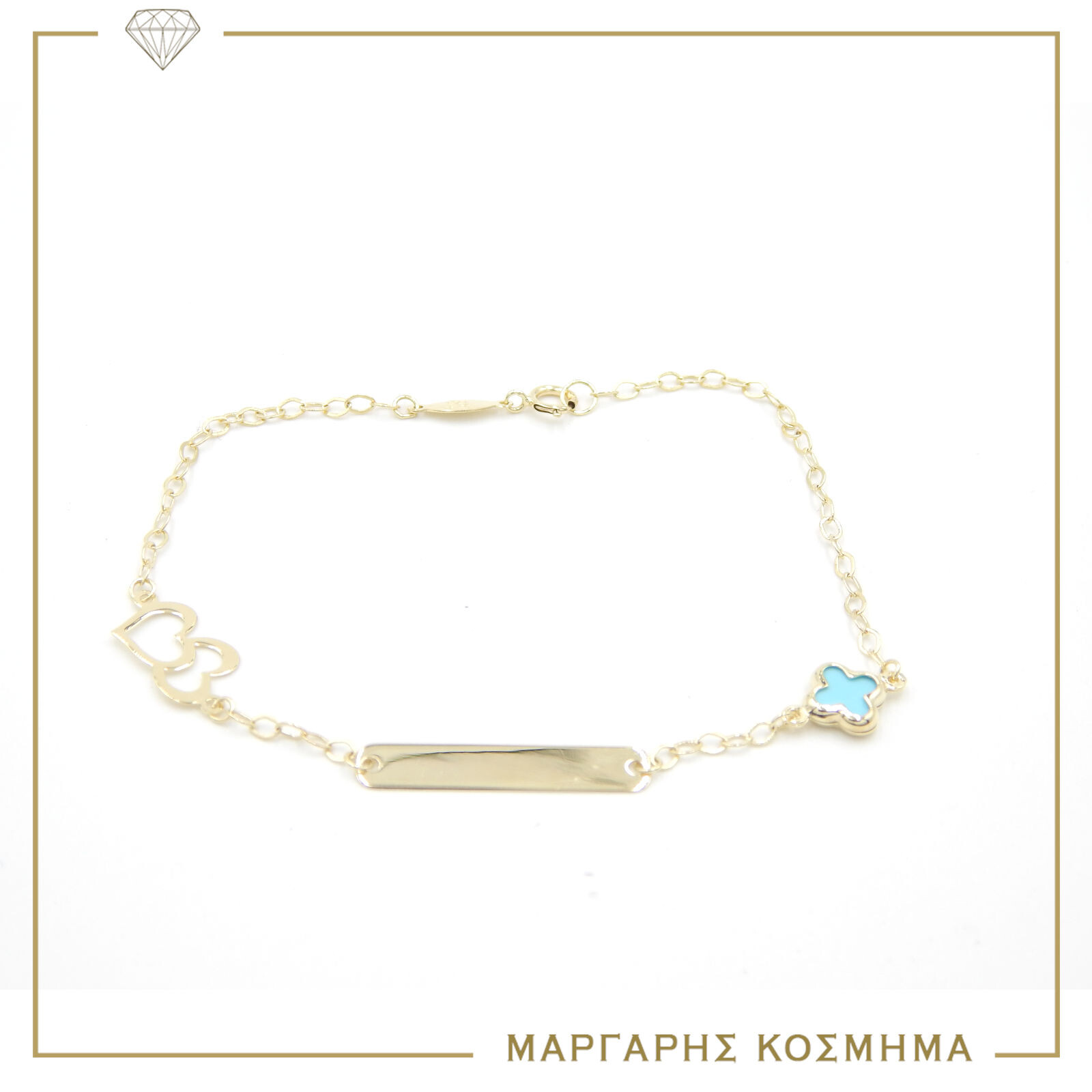 Ταυτότητα Κίτρινο Χρυσό Κ-9 Με Τυρκουάζ Σταυρό και Καρδιές.