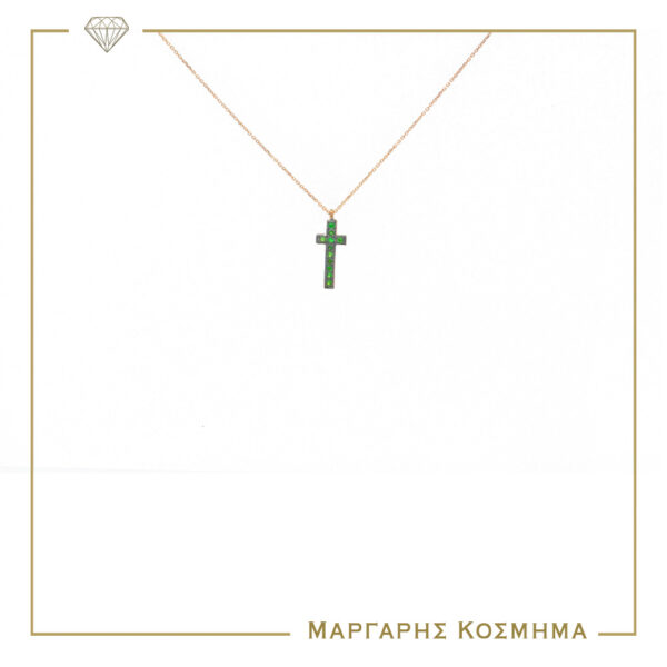 Γυναικείο κολιέ σε ροζ χρώμα Κ9 με πετράτο σταυρό