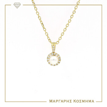 Γυναικείο κολιέ σε κίτρινο χρυσό Κ14 διακοσμημένο με μαργαριτάρι και μικρές πέτρες.