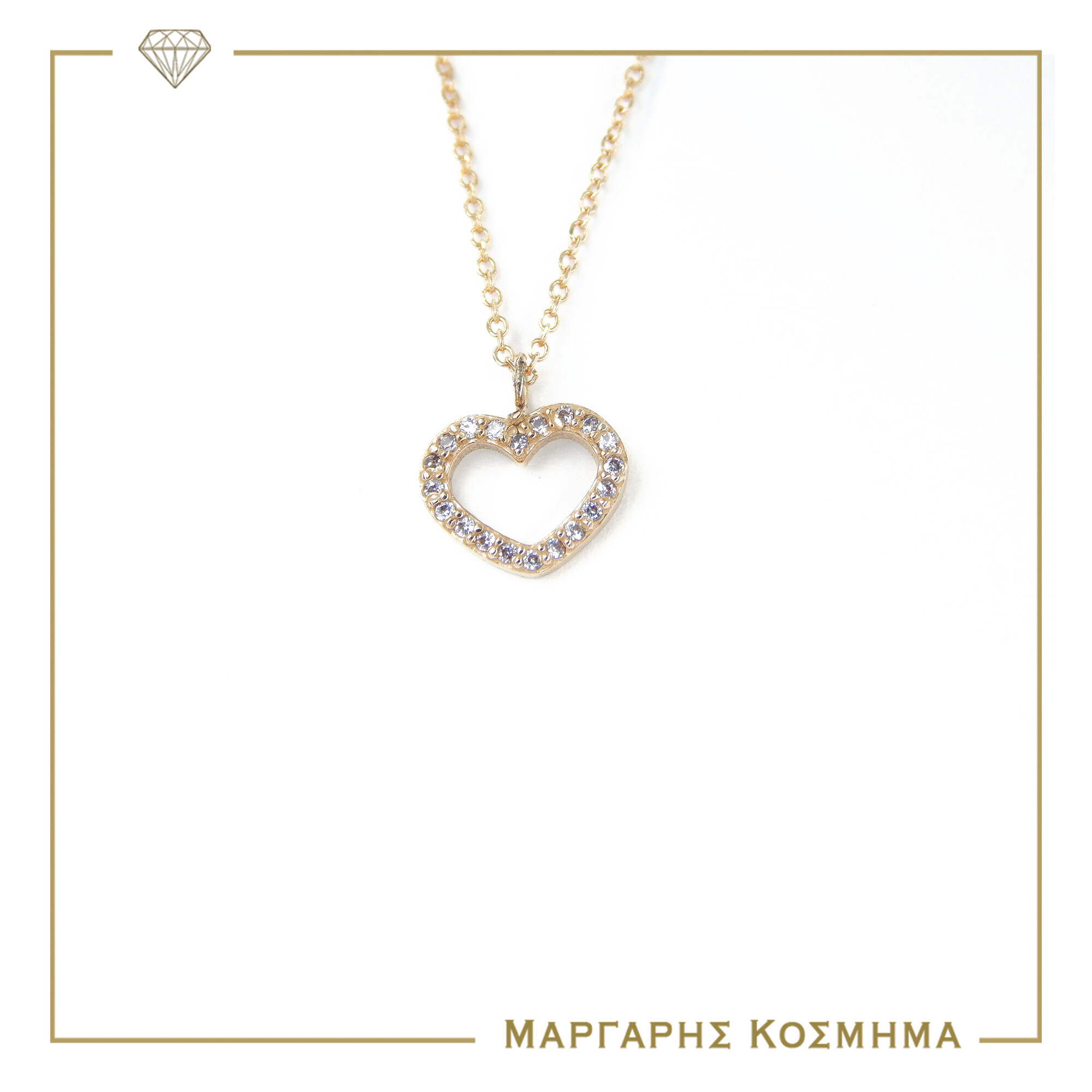 Υπέροχο γυναικείο κολιέ σε κίτρινο χρυσό Κ-9 σε σχήμα καρδιά