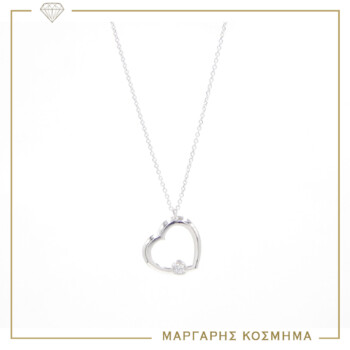 Γυναικείο λευκό χρυσό κολιέ σε καρδία με ζιργκόν.