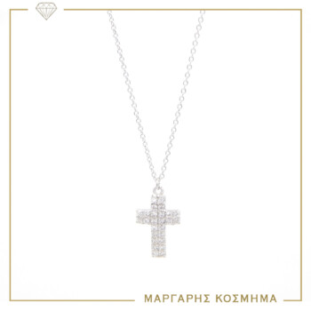 Διαχρονικό γυναικείο κολιέ σε λευκό χρυσό Κ-9 με σταυρό.