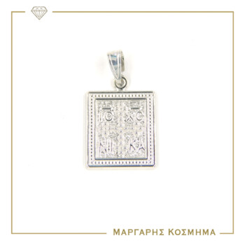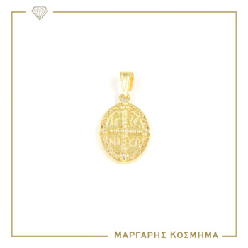 Κρεμαστό φυλαχτό Κωνσταντινάτο, από χρυσό , διακοσμημένο με πέτρες στο εσωτερικό του, οι οποίες σχηματίζουν ένα σταυρουδάκι και λουστρέ ανάγλυφα γράμματα γύρω του να το στολίζουν