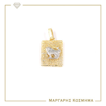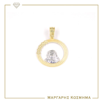 Κρεμαστό Φυλαχτό Δίχρωμη Παναγίτσα, από χρυσό, με ανάγλυφες λεπτομέρειες και ένα μπλε ματάκι