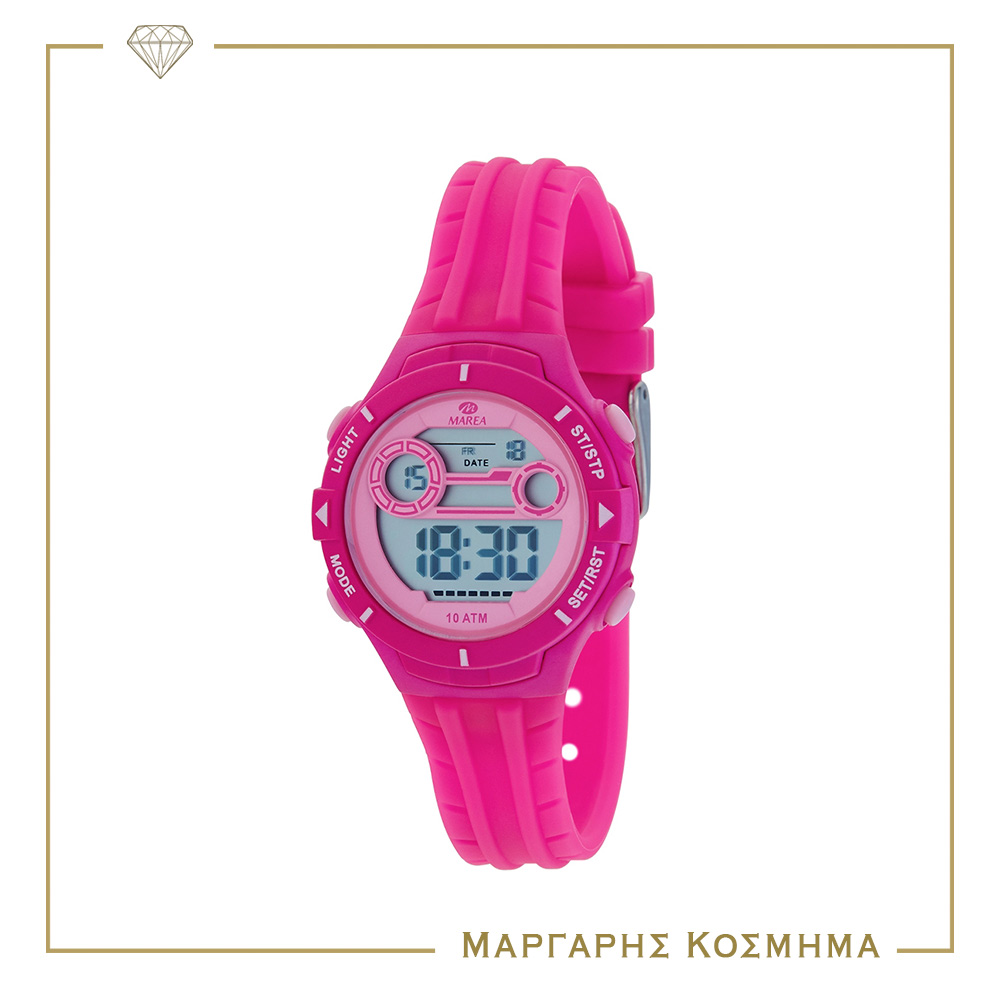 Παιδικό ρολόι Marea με ροζ καουτσούκ, πλαστική κάσα και 10 atm Water Resistant.