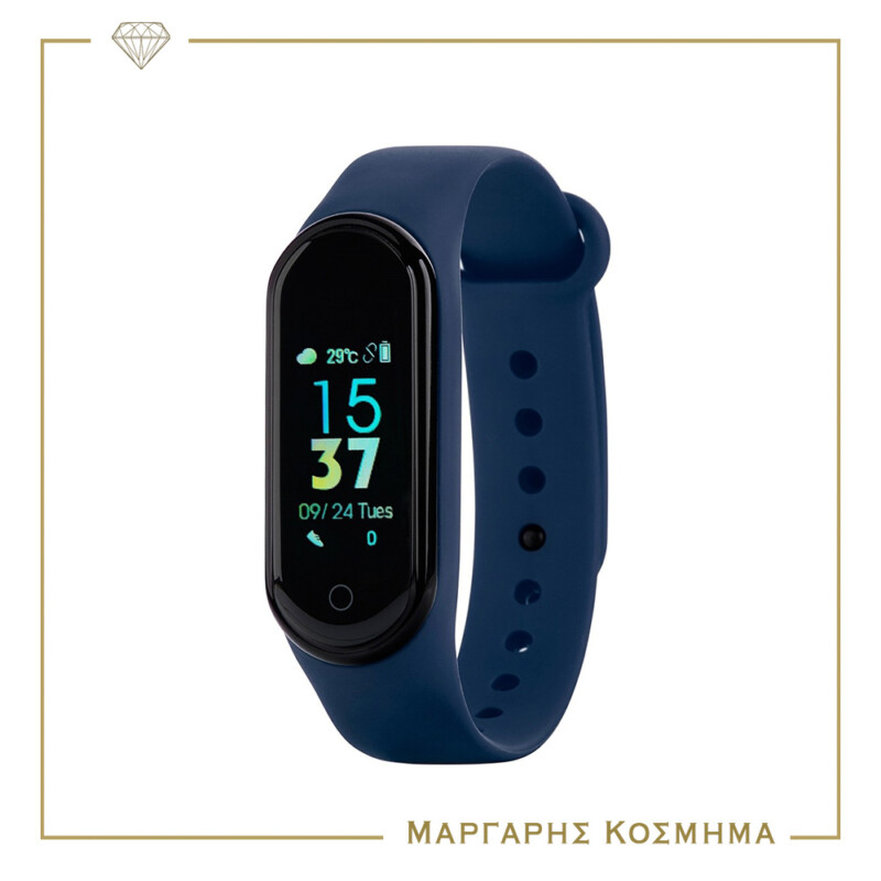 Smart Band από την Marea με λουράκι μπλε από καουτσούκ . Οθόνη: 0 ,96 inches. Μπαταρία: 90mA (3 ημέρες με απλή χρήση/ 5 ημέρες αναμονή). Μέγεθος: 18*36mm