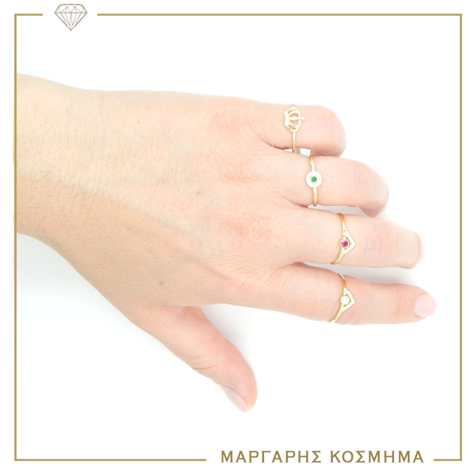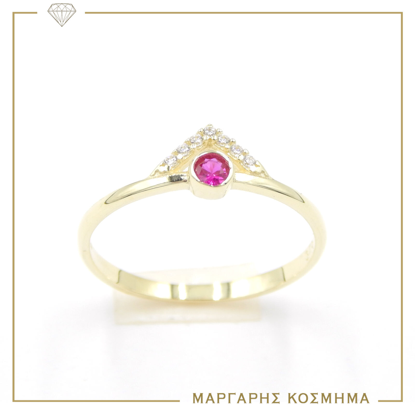 Δαχτυλίδι κίτρινο χρυσό στα 9– καράτια ,λαμπερό σχέδιο με κόκκινο και λευκά ζιργκόν που φορείτε μόνο του