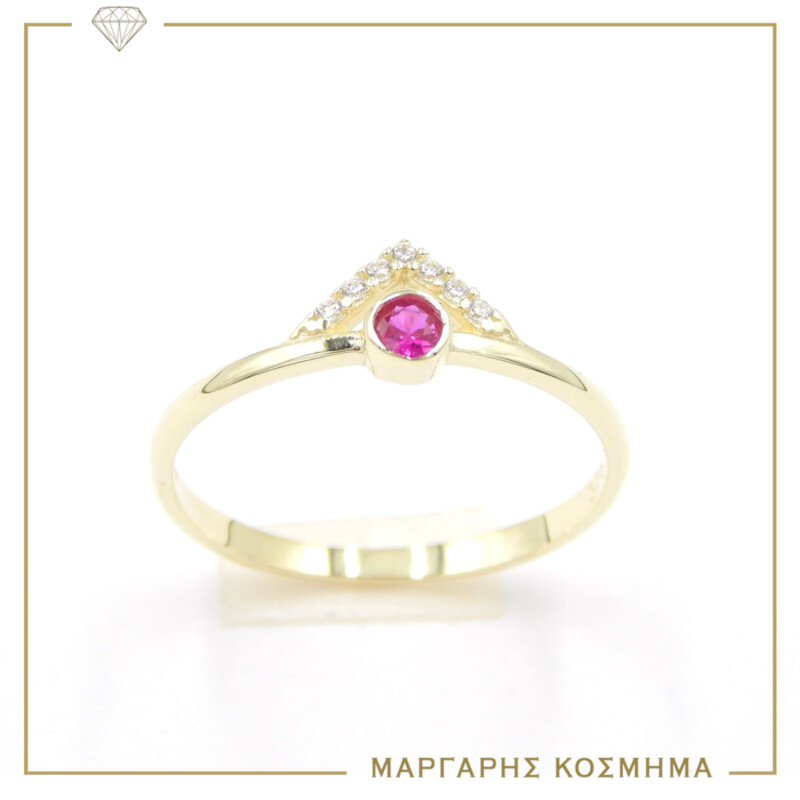 Δαχτυλίδι Σε Κίτρινο Χρυσό Με Λαμπερά Κόκκινα Λευκά Ζιργκόν.