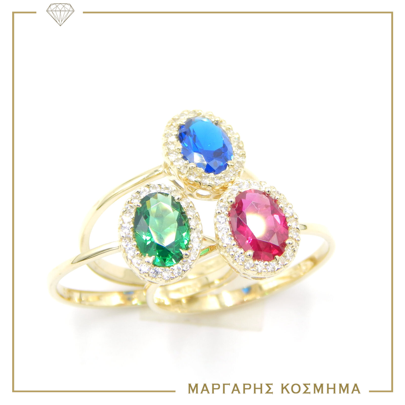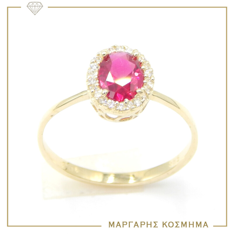 Κίτρινο χρυσό δαχτυλίδι στα 14 καράτια χρυσό με πολύ όμορφο κόκκινο κέντρο και πλαινα λευκά