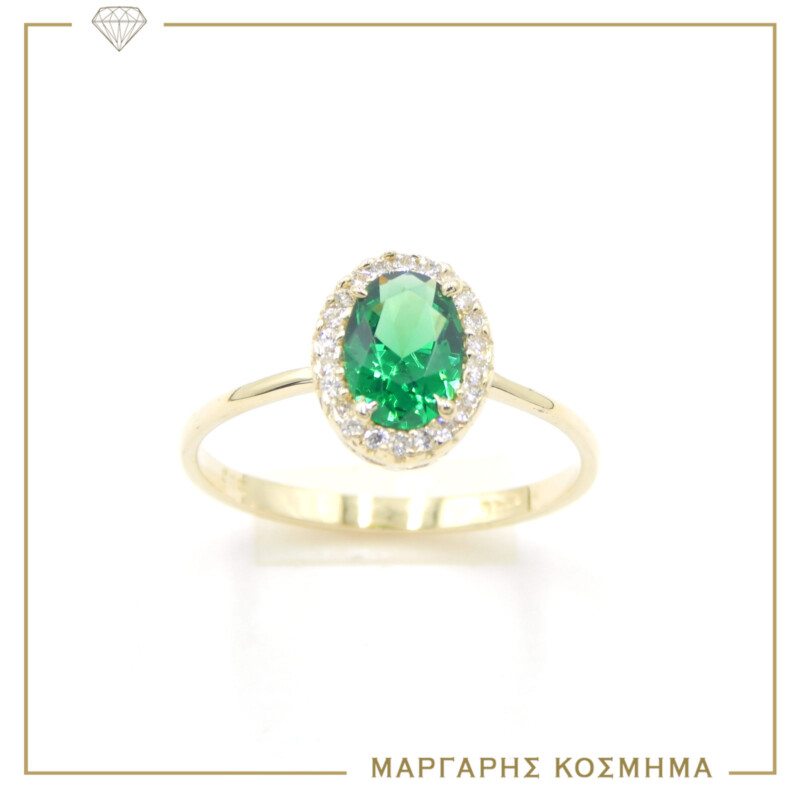 Κίτρινο χρυσό δαχτυλίδι στα 14 καράτια χρυσό με πολύ όμορφο πράσινο κέντρο και πλαινα λευκά