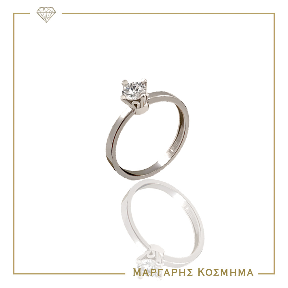 BR120 Λευκόχρυσο Μονόπετρο Δαχτυλίδι Με Μπριγιάν 0,34D