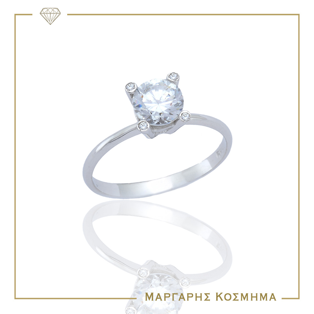 BR128 Λευκόχρυσο Μονόπετρο Δαχτυλίδι Με Μπριγιάν