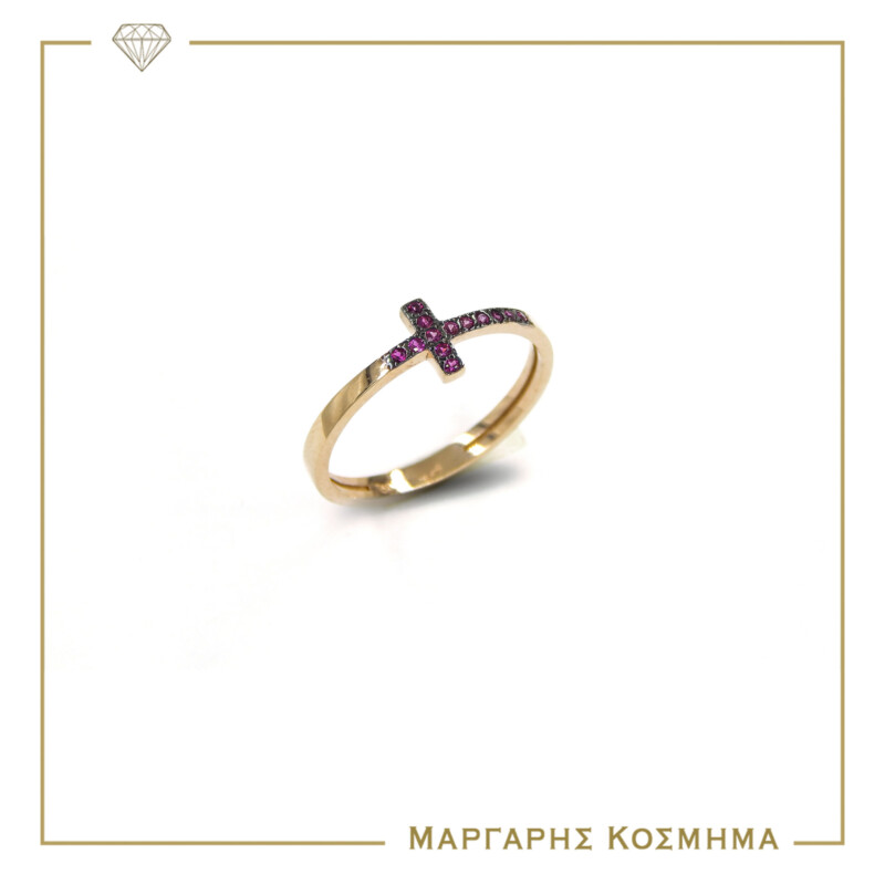 RI307 Ροζ Χρυσό Δαχτυλίδι με Ζιργκόν κόκκινα