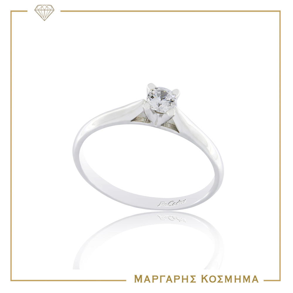 Λευκόχρυσο Μονόπετρο Δαχτυλίδι με διαμάντι κοπής μπριγιάν , σε απόχρωση FVS-2.