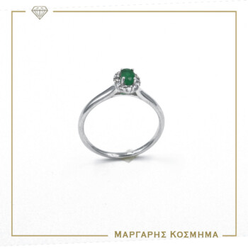 Λευκόχρυση ροζέτα με σμαράγδι κεντρο και μπριγιάν.