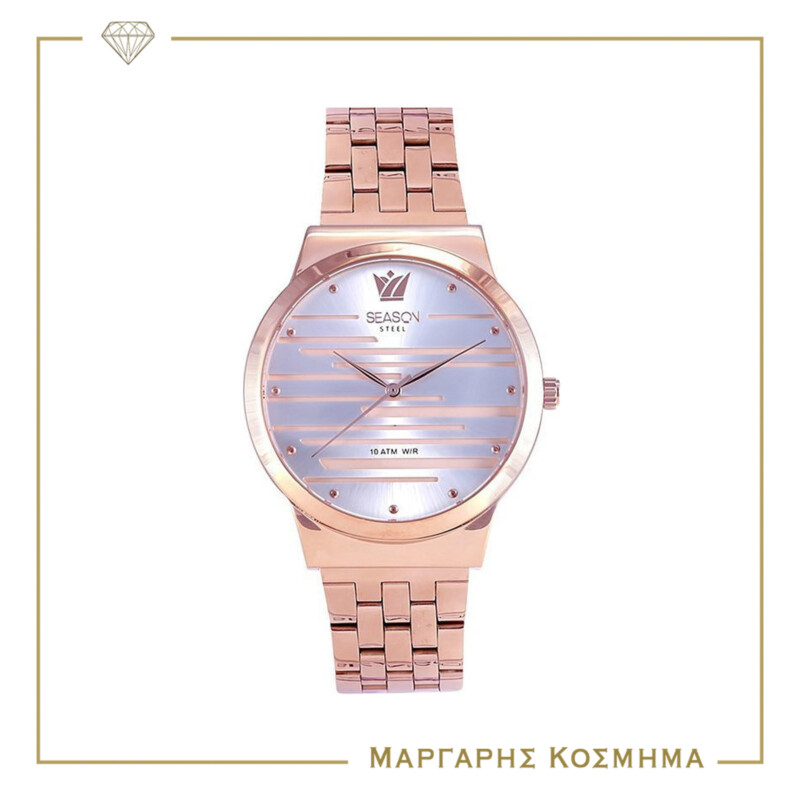 Γυναικείο ρολόι Season TIme της σειράς Glory με ροζ χρυσό ατσάλινο μπρασελέ, ροζ χρυσή κάσα και γκρι καντράν