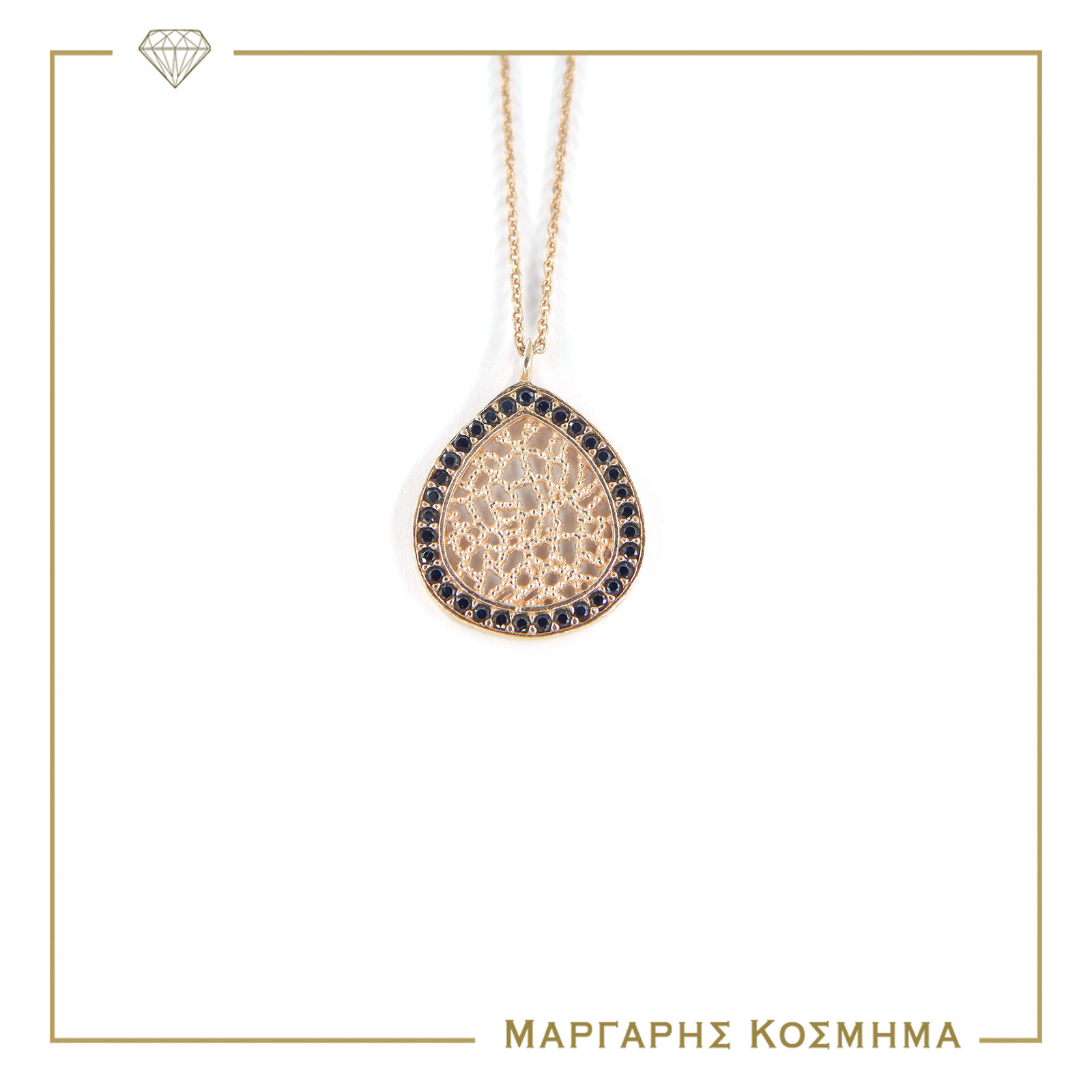 Κολιε ασημενιο σε χρωμα ροζ χρυσο,με μαυρες πετρες.