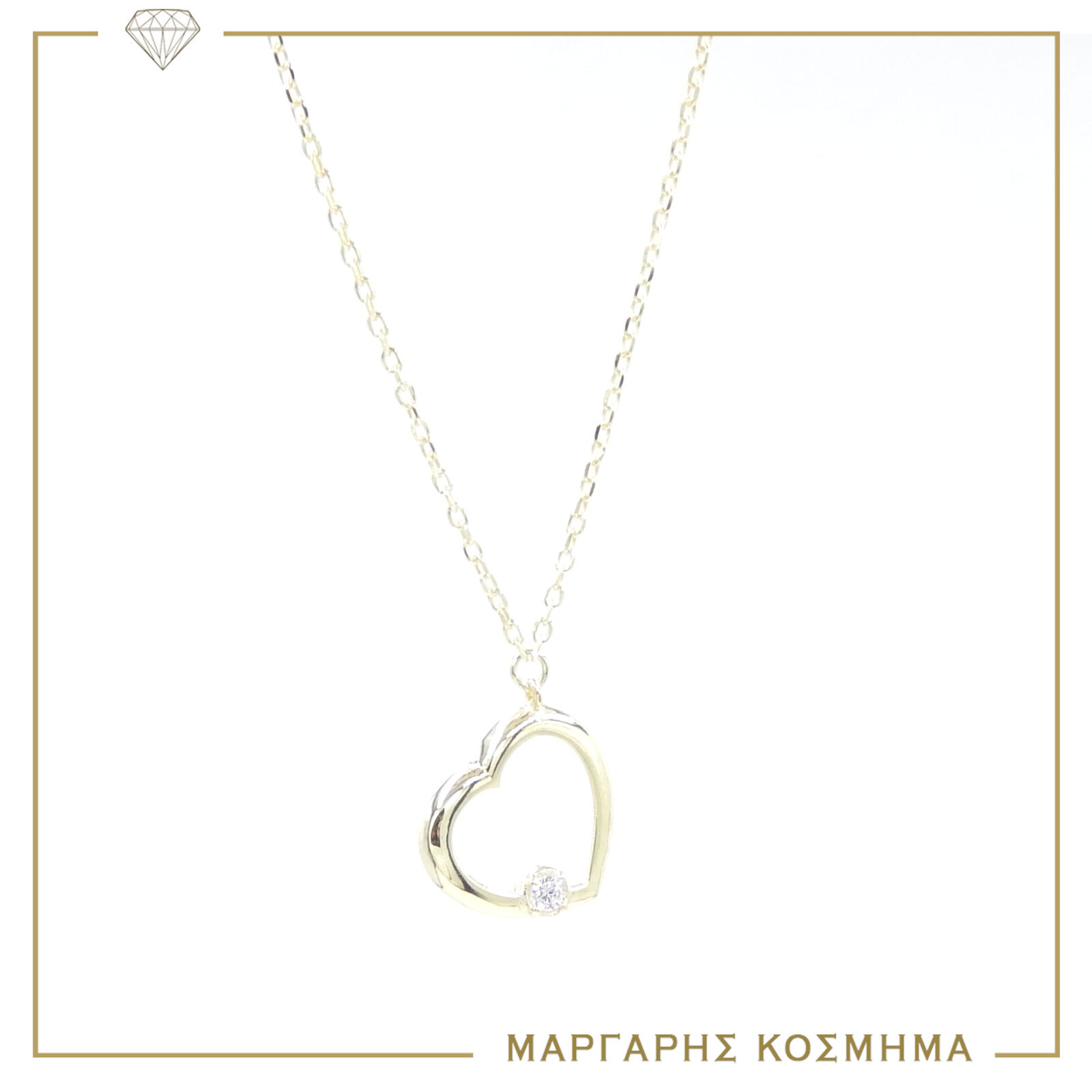 SILK026 Ασημένιο κολιέ καρδιά με ζιργκόν.