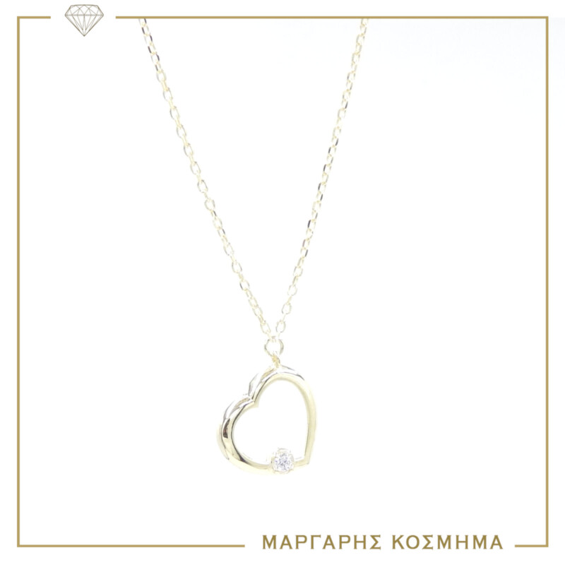 Κολιέ από ασημί 925 επιχρυσωμένο σχέδιο καρδιά με λευκό ζιργκόν, ένα όμορφο κόσμημα