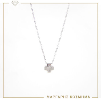SILK031 Ασημένιο κολιέ σταυρός με ζιργκόν.