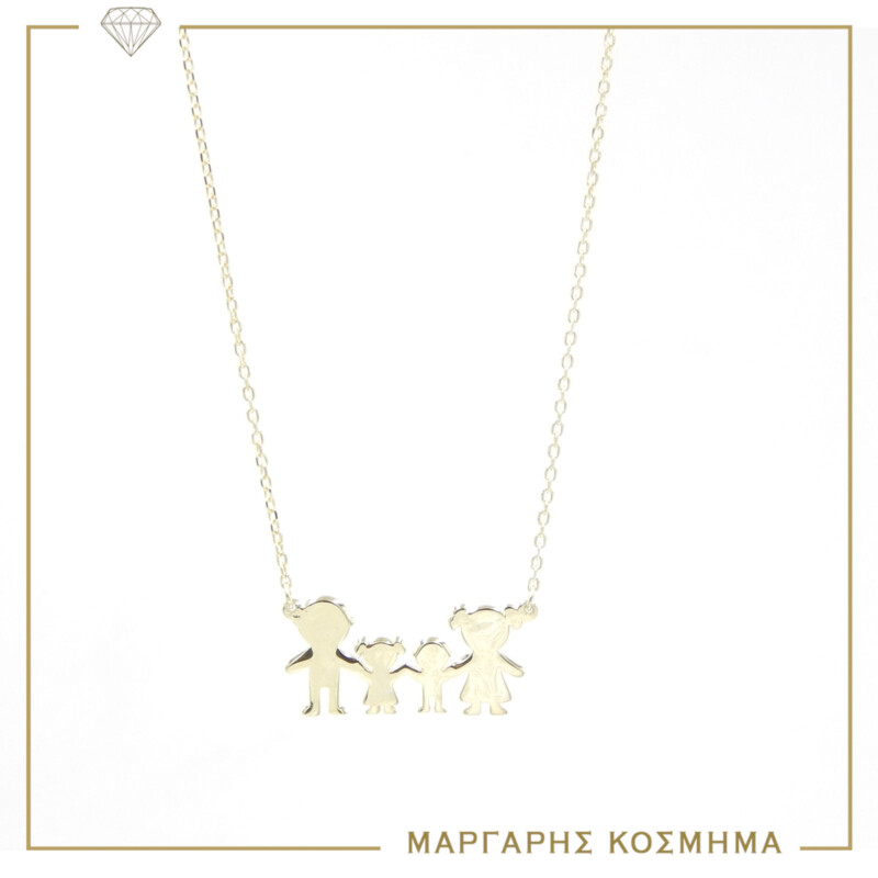 Κολιέ από ασημί 925 επιχρυσωμένο σχέδιο οικογένεια μαμά μπάρμπας αγόρι κορίτσι, ένα όμορφο κόσμημα