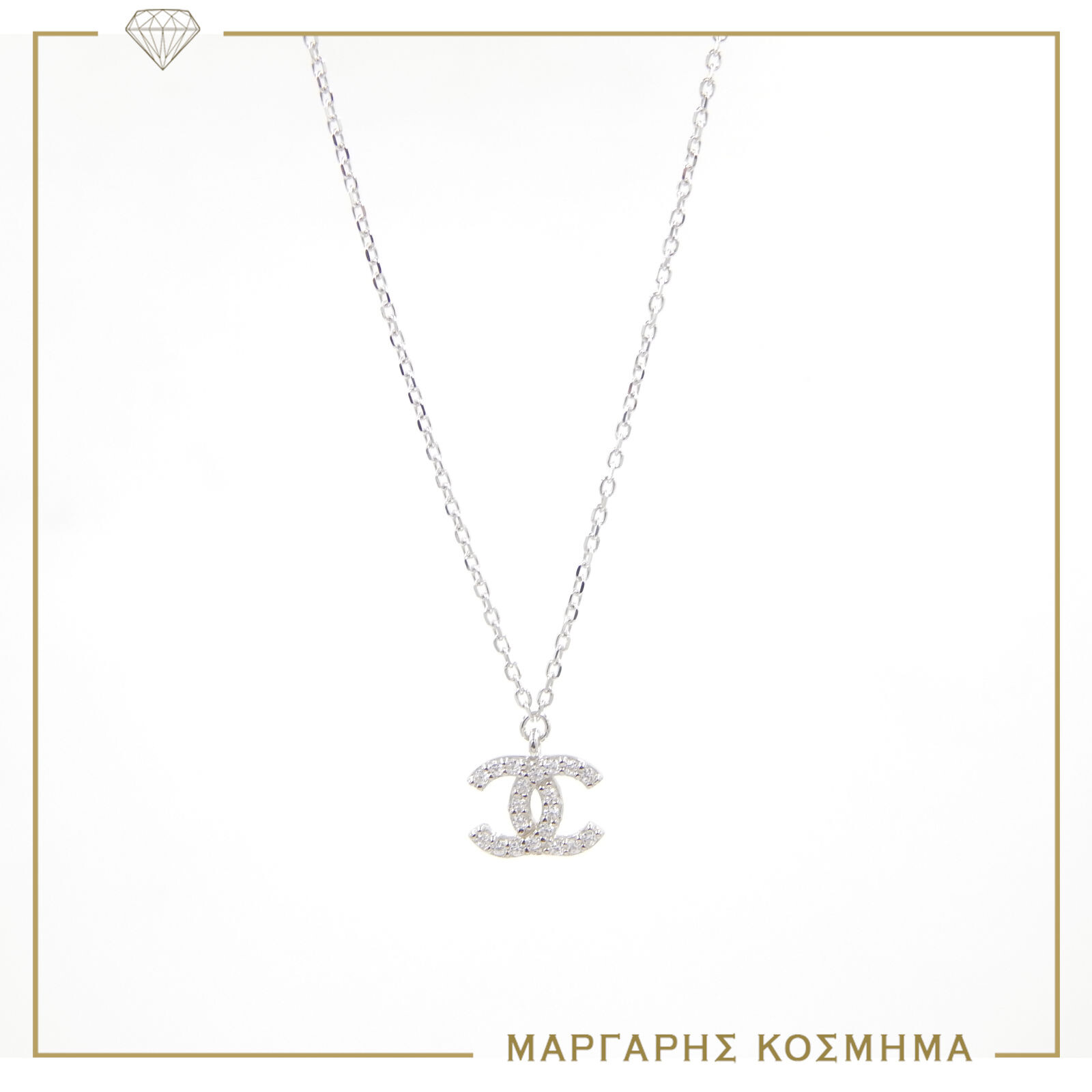 Κολιέ από ασημί 925 σχέδιο chanel με λευκά ζιργκόν, ένα όμορφο κόσμημα
