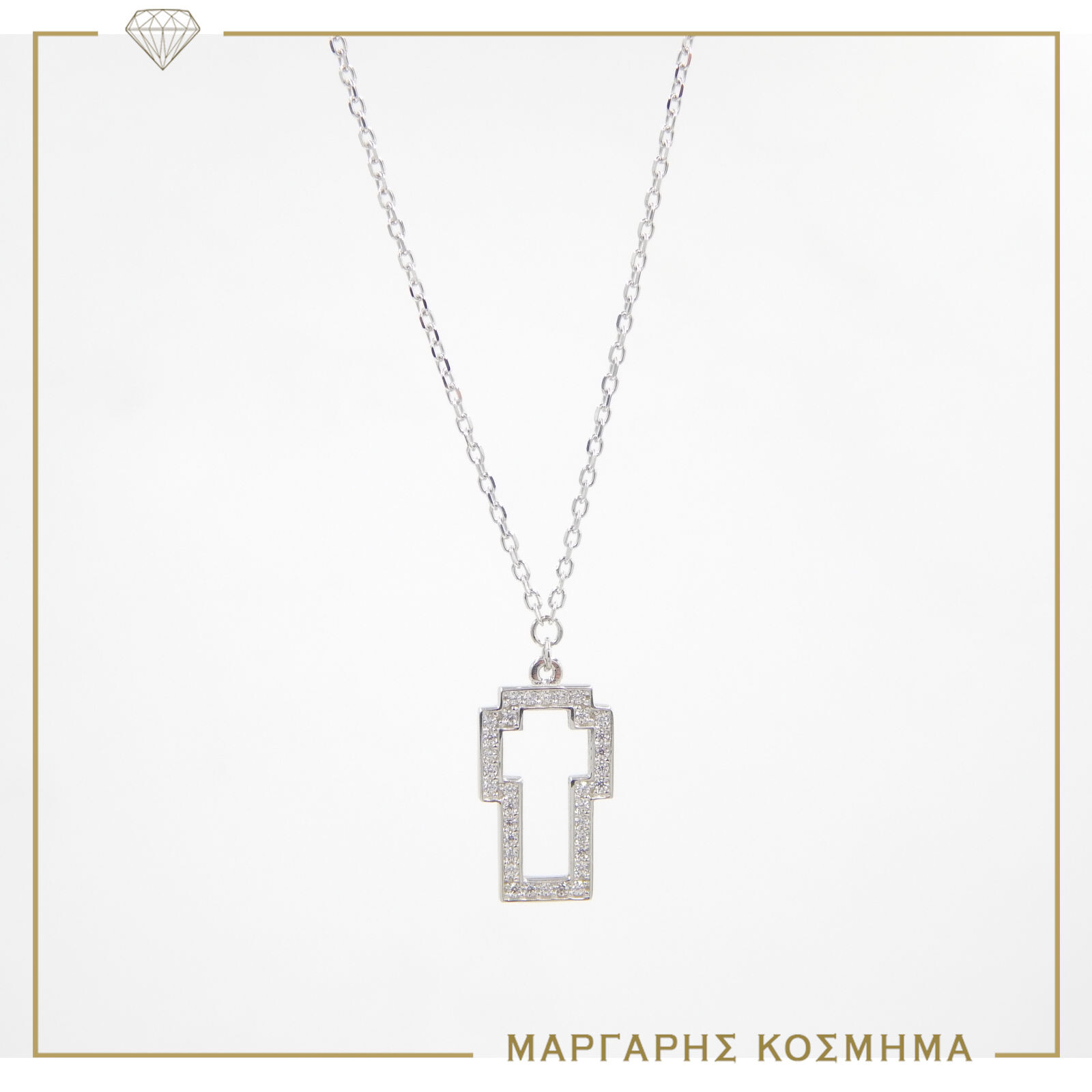 SILK032 Ασημένιο κολιέ σταυρός με ζιργκόν.