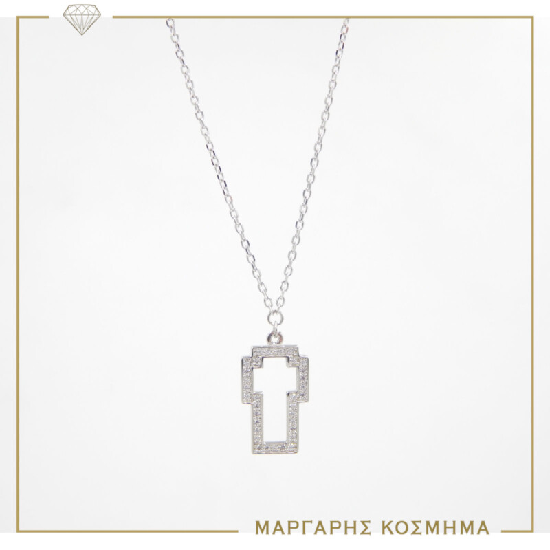 Κολιέ από ασημί 925 σχέδιο σταυρός με άσπρα ζιργκόν, ένα όμορφο κόσμημα με ακριβό ς την ίδια δουλεία με τα χρυσά κοσμήματα,