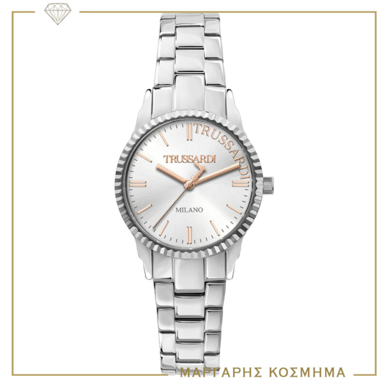Ο οίκος TRUSSARDI έχει μακρά παράδοση στη σχεδιαστική κομψότητα και το αποτέλεσμα είναι πάντα μοντέλα γεμάτα στυλ, όπως το συγκεκριμένο ρολόι. Από ανοξείδωτο ατσάλι και ροζ λεπτομέρειες.