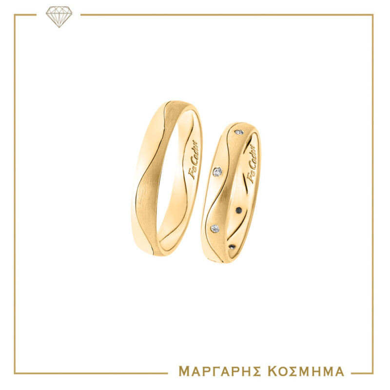 Βέρες Γάμου σε 9Κ/14Κ/18K χρυσό, με ζιργκόν ή διαμάντια. Διαθέσιμες σε οποιοδήποτε μέγεθος-χρώμα-φινίρισμα. Διαμάντια συνολικού βάρους 0,07 ct, κοπή μπριγιάν, καθαρότητα VS, χρώμα G/H. H τιμή αναφέρεται σε αντρική βέρα Κ9 χωρίς διαμάντια, σε νούμερο 41. Πλάτος: 3,77 mm (Τιμή από 408€ το ζευγάρι). Η τιμή μπορεί να αλλάξει αναλόγως τα νούμερα και τα καράτια  της παραγγελίας.